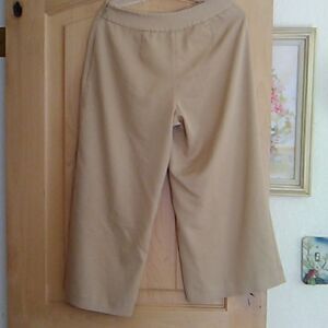Khaki colored , classic pants. Side zip. Flat front. Wider waistband. Inside tab closure. Size 8 measures 30 at waist, 48 at hips, 11 inch rise, 24 inch inseam. 24 inch leg opening. Perfect.