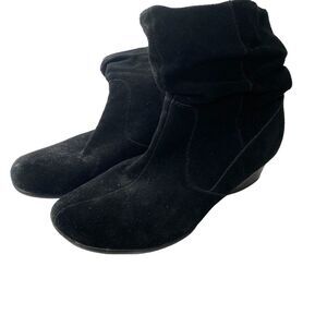Nicara Black Suede Scrunch Ankle Heeled Womens Fashion Boot Size 8.5