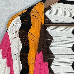 Nicaya Open Cardigan Women L Multicolor Print 3/4 Sleeve Stretch Knit D24