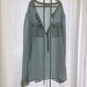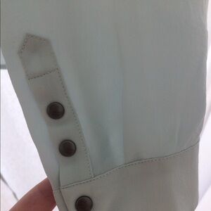 I loved this shirt! ... worn a couple times still in good condition. A couple tiny pin prick’s on either side above the pockets and slight yellowing under the arms but still looks great!