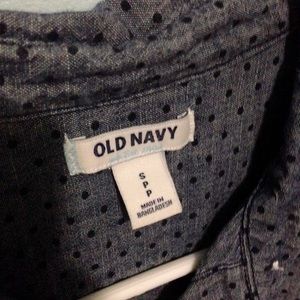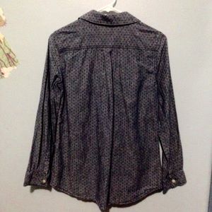 Very nice blue, with darker blue polka dots, button down shirt. The buttons are white, and the polka dot pattern can be well seen in the tag photo. Great condition, worn a few times 😊