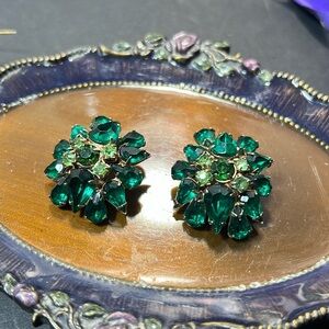 Nice Emerald and Peridot Green Rhinestone Clip On Earrings. WA339