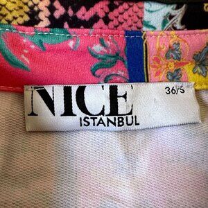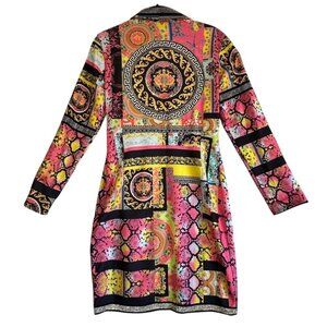 Nice Istanbul Baroque Print Embellished Long Sleeve Mini Bodycon Dress Sz 36 / S