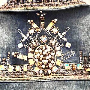 Nice Istanbul Women's Jean Embellished Gold Iridescent Beads-Pearls/Embroidered
