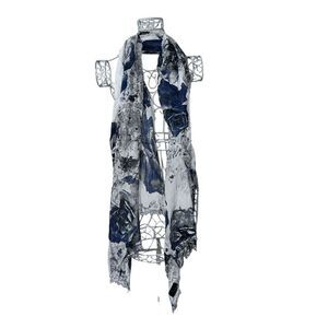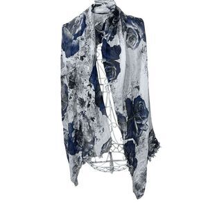 Nice LARGE Scarf Women's Scarf Wrap Shawl BLUE AND WHITE FLORAL Wrap Shawl Scarf
