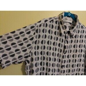 Nice Men's Perry Ellis 100% Silk Shirt Button-up Short Sleeved Shirt White Black