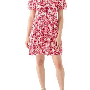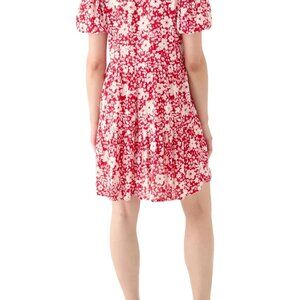 Nice Oak & Trellis Small Dress Red Cream Floral Short Tiered Shirtdress NWT!