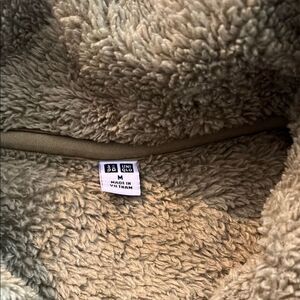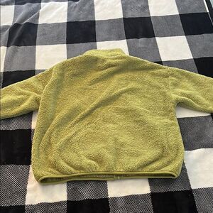 Cozy olive green fleece jacket. Full zip closure. Perfect for chilly days.