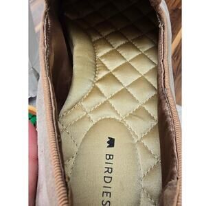 A classic smoking slipper, the Birdies Starling flat is crafted from premium latte tan suede, offering a soft touch and a sleek, understated design that's rated five-star fabulous by 25,000+ women! Indulge in the lined the footbeds with satin for added luxury and cloud-like comfort. The flat is complete with their signature grosgrain backtab and subtle gold Birdies logo.