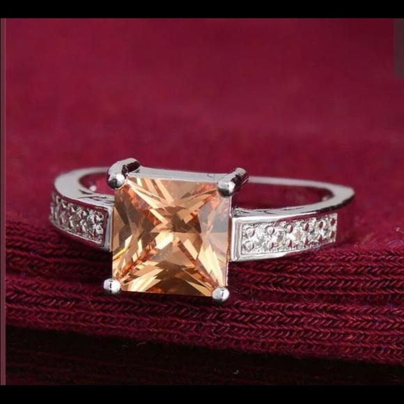 This is a brand new silver ring with nice big topaz color stone size 8.