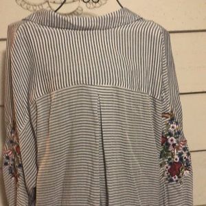 Nice light loose fit with beautiful floral embroidery on the sleeves.