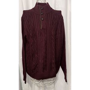 Nice TRICOTS st RAPHAEL MENS CABLE KNIT SWEATER quarter button size large burgun