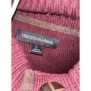 Nice TRICOTS st RAPHAEL MENS CABLE KNIT SWEATER quarter button size large burgundy, colored, Good Condition