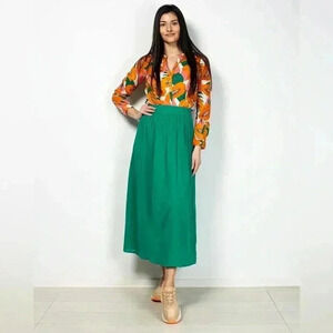 Nice Things orange tropical papaya print cotton blouse size 40/small