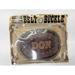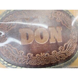 Nice Vintage Don Stamped Leather and Brass Belt Buckle