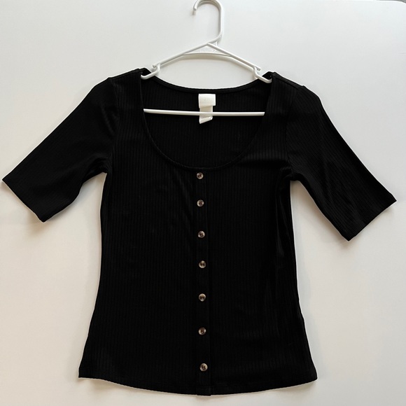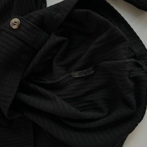 Worn once. Soft ribbed material with stretch. Fitted. Probably runs a little big in my opinion and fits like a small. Button design but fully attached down the front seam