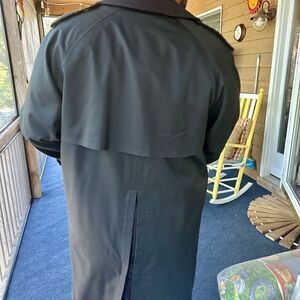 Nice classic raincoat with 100% wool lining that can be removed with a zipper in extra large .Has been drey cleaned . In excellent used condition. One inside button is a little loose. Behind the lining you find the classic Burberry pattern.