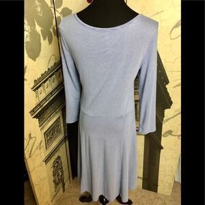 Nice lightweight dress by Skater Dress in size large. It’s fine striped light blue and white dress. 48% rayon, 47% polyester and 5% spandex. Gentle used condition.