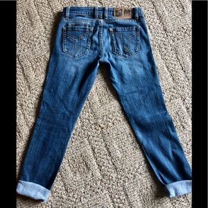 Nice straight jeans by Vigoss Studio size 3/4. These jeans have been cut, see picture. The inseam is 28” rolled up 24”.
