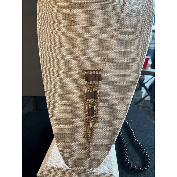 Necklace has a 12 inch drop in length. The decorative part is 7 inches long.