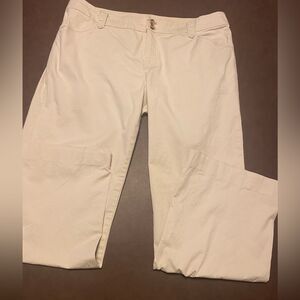 Nice light pants by Eddie Bauer in size 14. 97% cotton and 3% spandex. Inseam is 29” and rise is 10”. Small spot on bottom left leg besides that it’s in good condition.