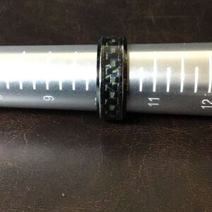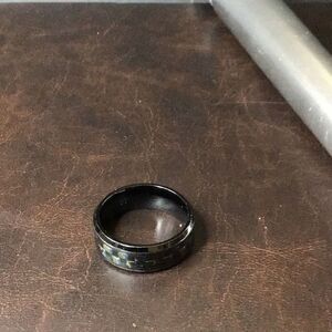 Nice stainless black ring with shimmering blue and green center etchings size 10