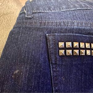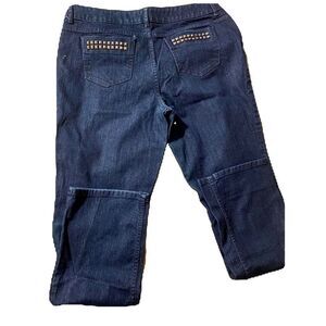 Nice dark blue straight jeans by Vera Wang from the Simply Vera collection in size 12. Has embellishments on the pockets. I noticed a light spot I think it’s in the material , see picture. Inseam is 30” and rise is 9”. Gentle used condition.