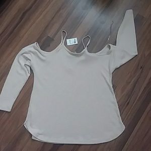 Peach color cut off shoulder top nice thin soft material brand new never been worn