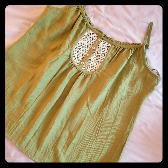3 for 20....Light army green flowy top , spaghetti straps. Beautiful color and the material kinda light linen. Very nice top with jeans and heels or with sneakers too. New never used without tags.