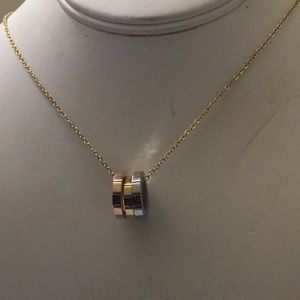 Beautiful 14 karat Gold plated is a stainless steel set is unique for occasion with three small round pendant is a nice set for you