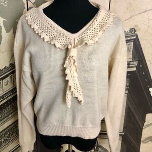 Nice vintage sweater in 100% wool by Alpenbliek in size 40 compared to a size 12. Light wear. Color is ivory.