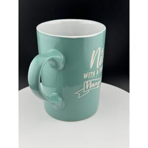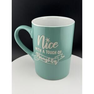 Start your day with a touch of charm and humor with this delightful teal mug. Adorned with the playful phrase 'Nice with a touch of Naughty', it’s perfect for a cheeky coffee break or afternoon tea. The glossy ceramic finish gives it a modern touch, making it an attractive addition to your kitchen or office. Whether for personal use or as a gift, this mug is sure to bring a smile. It’s not just a mug; it’s a conversation starter. Sip in style and enjoy your favorite beverages in this fun and stylish piece. Used, but doesn't look it! Dishwasher and microwave safe.