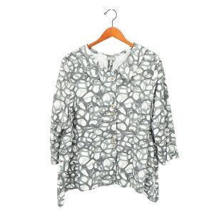 Niche Nilgun Derman Gray White Abstract Print Lagenlook Tunic Top XL