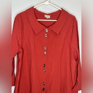 Niche Nilgun Derman Top Womens Size XL Lagenlook Crinkle Rust Orange