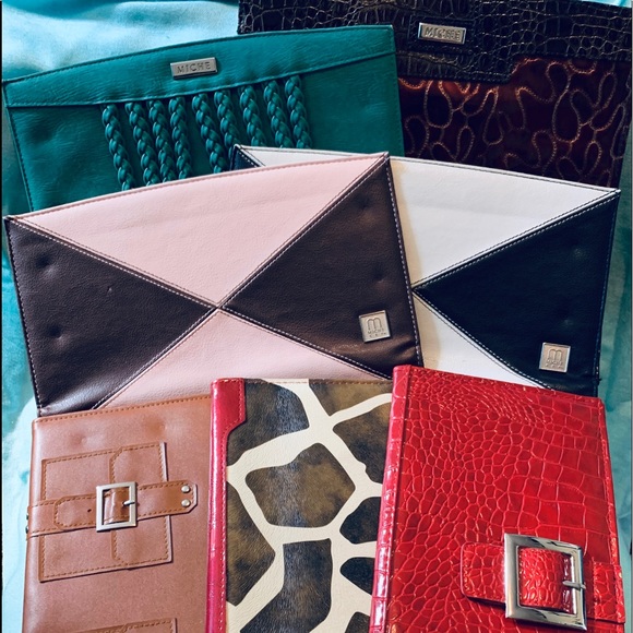 Excellent condition Miche shells. Seven in total. Only the black and white one shows any signs of use and it’s very minuscule. Comes with base that’s in fair condition.