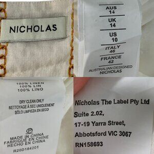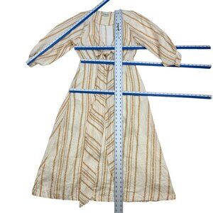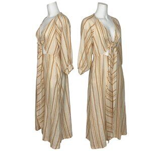 Nicholas Asilah Dress 10 Vintage Chain Ivory Linen Midi Tie Front Cutout Resort