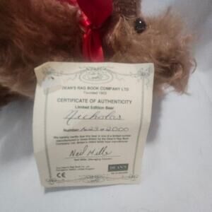 Nicholas Bear Deans Rag Book CofA Brown Mohair Red Bow 12 in B23