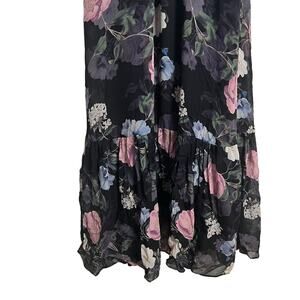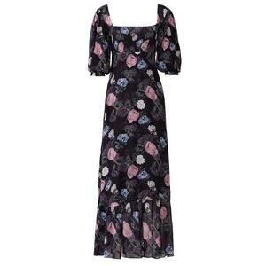 Nicholas Black Floral Silk Square Neck Smocked Maxi Dress Size 0