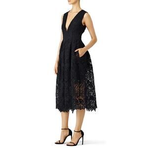 Nicholas Black Mosaic Lace Ball Sleeveless V-Neck Midi Dress Size 4