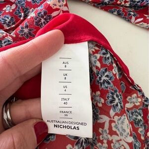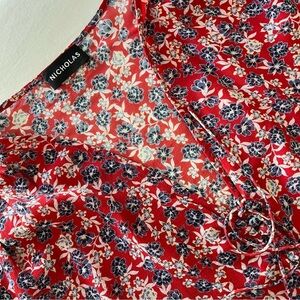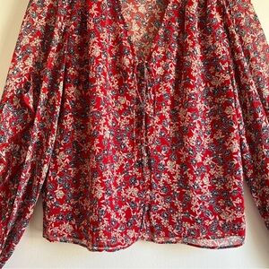 Beautiful "Blossom Ruffle" blouse in a red ditsy floral print ("Red").