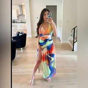 Embrace vibrant style with this stunning multicolor halter maxi dress. Perfect for any occasion, this dress features a bold mix of colors that make a statement. Ideal for those who love to stand out.