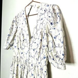 Nicholas Celie White Blue Floral Button Front Print Puff Sleeve Maxi Dress Size6