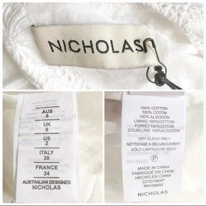 Nicholas Cellie Cotton Featherington Eyelet White Dress Size 2