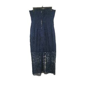 Nicholas Colva Dress Size 8 Navy Blue Lace Strapless Pencil Coctail Dress
