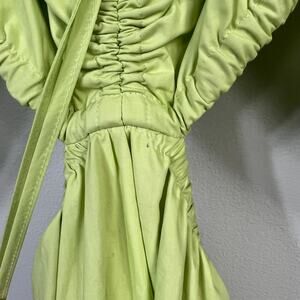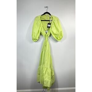 Nicholas Cotton Poplin Green Balloon Sleeve Midi Dress