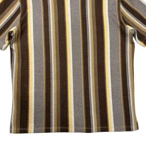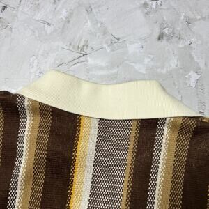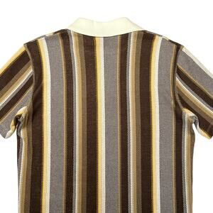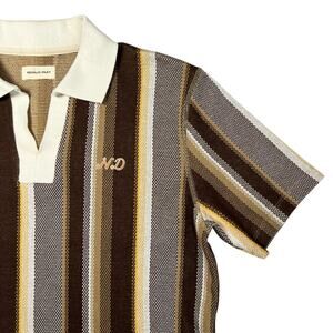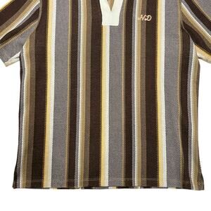 Nicholas Daley Striped Cotton Polo Shirt SIZE M Brown Ecru Mustard Heavyweight Collar Shirt