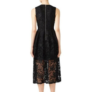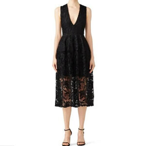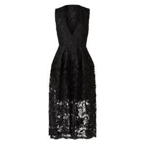 Nicholas Deep V Neck Floral Lace Midi Dress Black Size 0