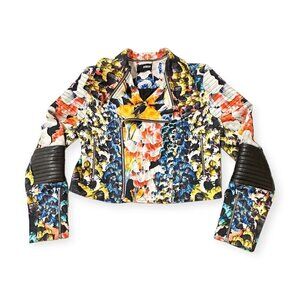 Nicholas Digi Floral Cotton-Blend Moto Jacket, Size 8