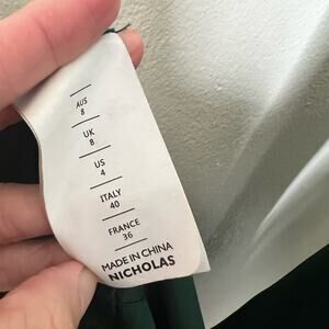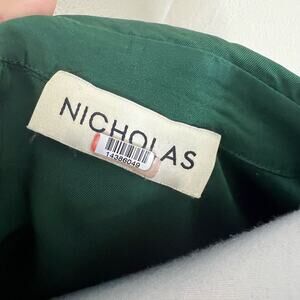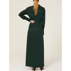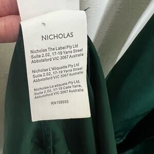 Nicholas Electra Satin Gown 4 Green Long Sleeve Maxi V-Neck A-Line Cocktail Slit