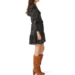 Nicholas Black Paisley Floral Long Sleeve Ruffle Trim Mini Elsie Dress size 4